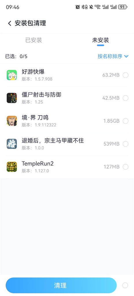 紧接着就会看见我们设备中未安装的安装包,这非常消耗内存的;