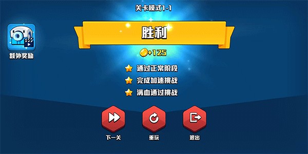 3星挑战成功,获得金币奖励,继续点击下一关;