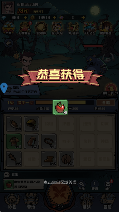 完成每日任务不仅能获得经验奖励,还能在等级提升后开启“挑战”——这是高收益副本,内含顶级装备与神器掉落,是冲刺战力的关键途径。