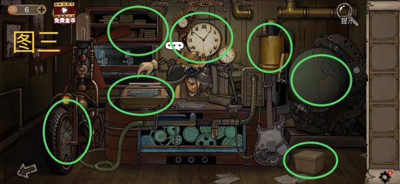 返回005室,点击主人背后钟表输入时间5:05:45获得齿轮。