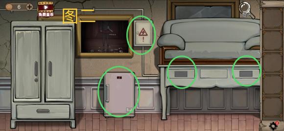 点击地球仪获得发光二极管,然后进入004室,在桌子上获得火钳,点击桌子左下角的密码箱,选中发光二极管安装后解锁小游戏(很不错的小游戏,要在6次机会内解锁密码。可以先输入12 34然后根据颜色来推断,黄色的可以调整位置。红色的数字就是没有的,把红色数字更换为后续数字)。通关小游戏后获得扳手。