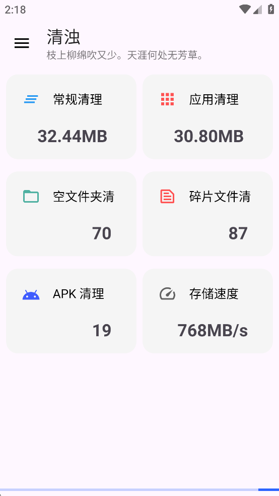 清浊安卓版是一款手机内存清理工具,智能扫描应用缓存、广告残留、安装包碎片、日志文件等隐藏垃圾,精准识别无用数据,释放宝贵存储空间,清理效率较系统自带工具提升50%以上。智能屏蔽烦人广告通知,减少系统负担,降低电量消耗,还用户一个清净的使用环境。