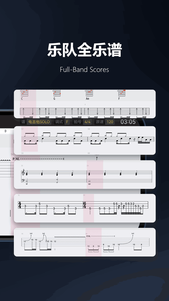 乐队功能谱歌曲和声与功能和声同步显示,任意转换调式。