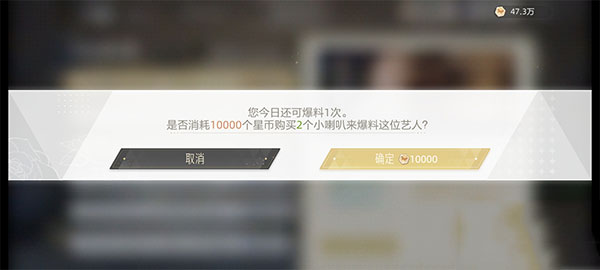 需要提醒大家的是,每人每天只能发布一次爆料,每个人每天被爆料的次数是5次,每次需要10000个星币买小喇叭来爆料。