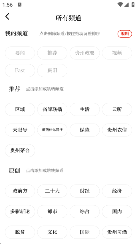 点击首页右上角的+图标,在所有频道页面添加删减首页展示的分类;