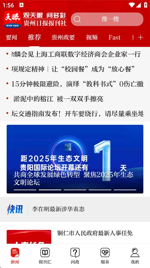 打开天眼新闻APP,在首页有关于贵州的各种新闻媒体资讯和新闻政要;