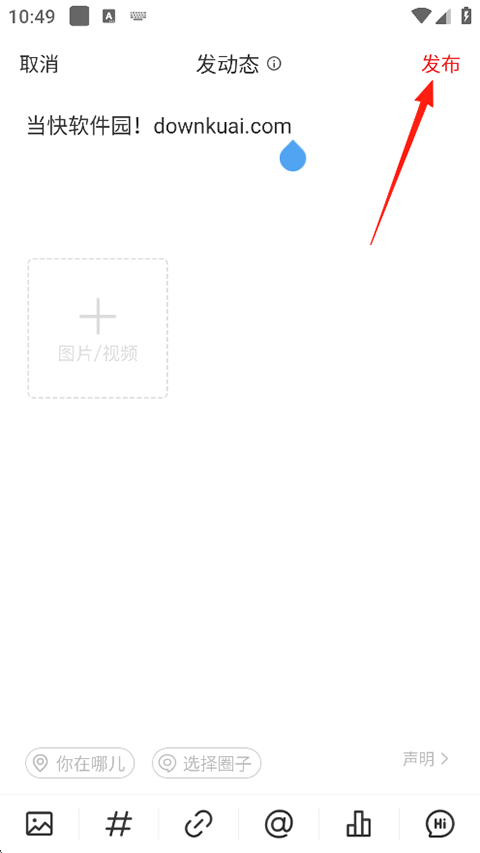 在发布页输入您想要投稿的内容,完成后点击右上角的发布;