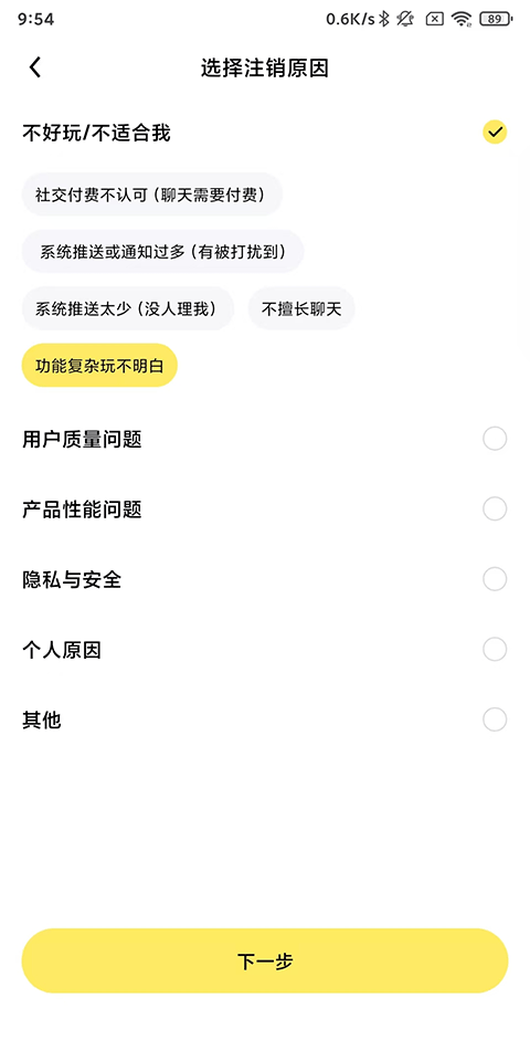 选择注销原因继续下一步;