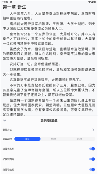 在这里可以修改翻页模式、屏幕超时、隐藏状态栏、扩展、隐藏导航栏等设置。