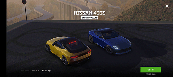 点击屏幕下方的“my cars”—“+”号,可以看到有超多赛车,选择一辆赛车购买。