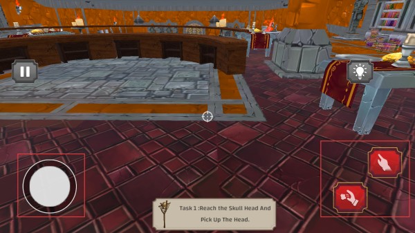 进入游戏场景后,利用左下角虚拟摇杆控制角色移动,右下角按键进行交互等操作,按任务提示推进游戏。