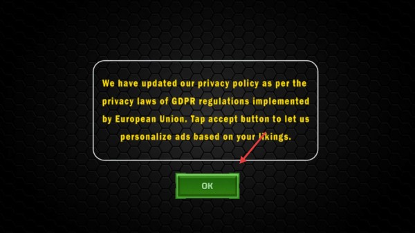 游戏开始时,若弹出隐私政策更新提示,点击【OK】按钮同意,以便进入游戏。