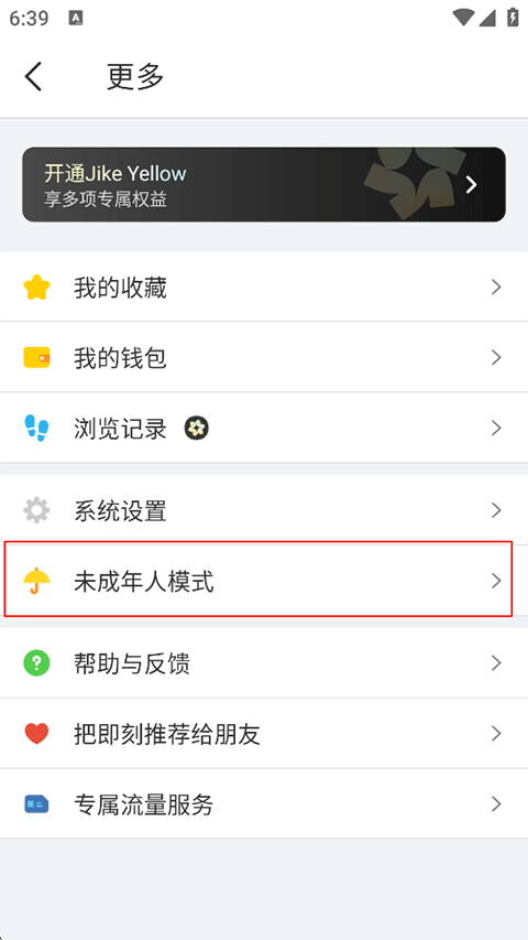 在更多页面找到并点击未成年人模式;