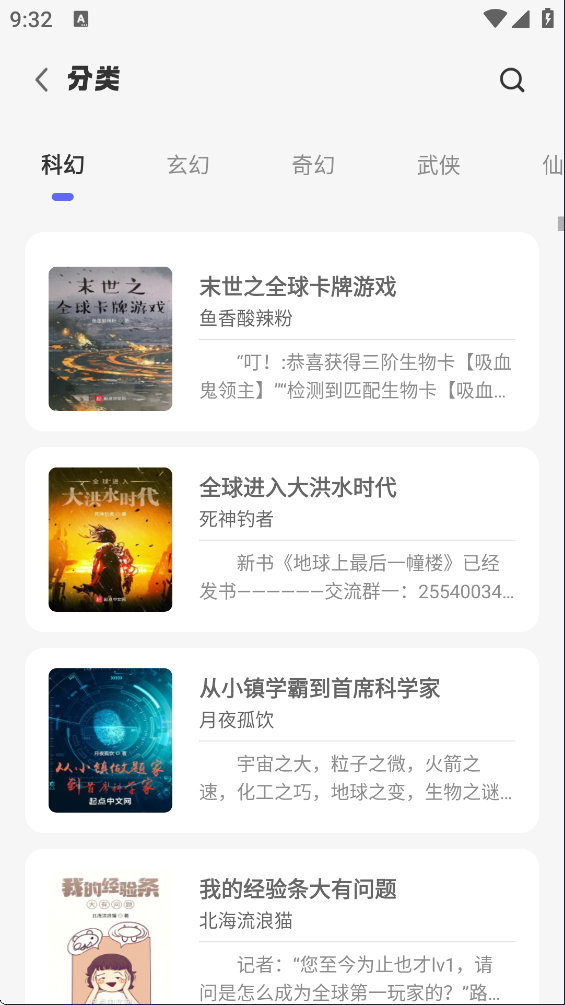 若广场推荐中没有想看的书,可以直接去“分类”中按喜好查找。