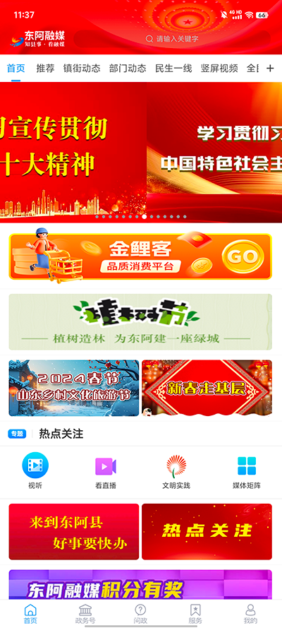 东阿融媒app是一款新闻阅读类型的软件,该应用实时推送本地新闻资讯、政策解读、民生报道等内容,全面涵盖时政要闻、经济发展、社会热点、文化活动和教育资讯等多个领域,让用户能够便捷地了解城市发展动态,亲身参与城市建设。平台还设有互动论坛、评论区等交流空间,鼓励用户分享生活见闻、参与热点讨论,并可通过APP直接反馈问题建议,有效搭建起政府与群众沟通的桥梁。
