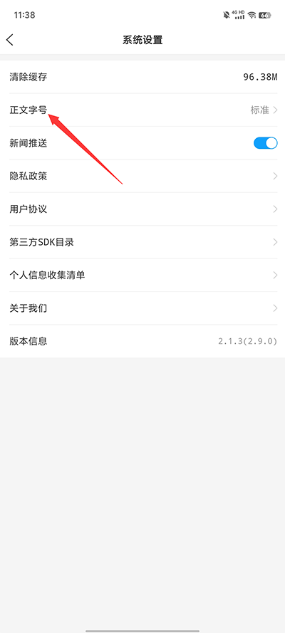在【设置】内点击正文字号;