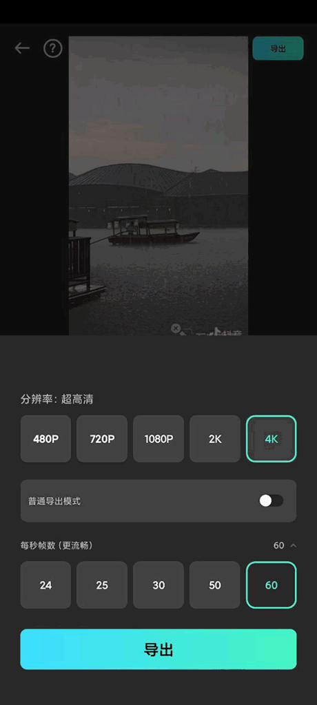 这个时候我们就需要设置导出视频的分辨率和帧数了,分辨率和帧数越高视频就越大,设置好了就点击导出。