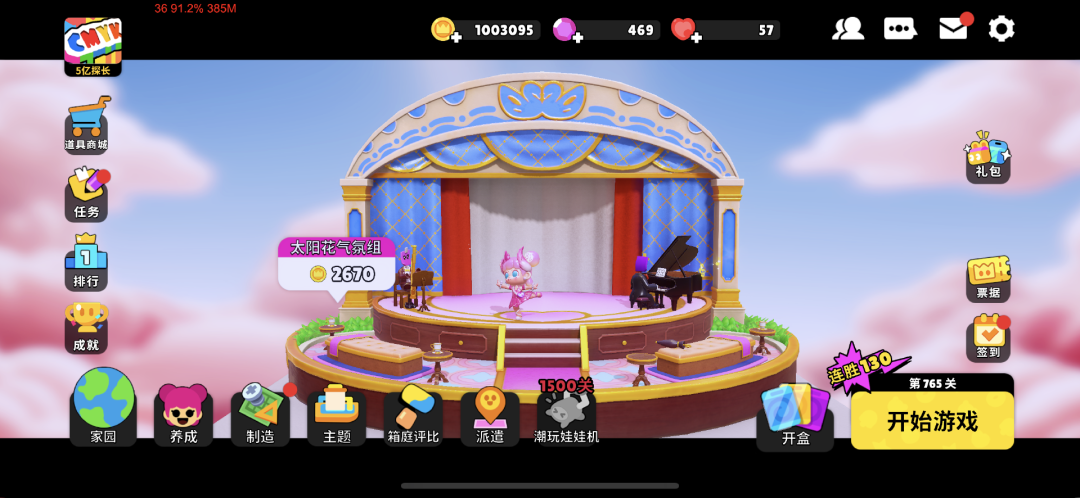 游戏结合了三消、箱庭布置与模拟经营的元素,玩家通过闯关获得潮玩,逐步扩展自己的收藏。