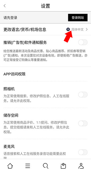 下载并打开乐天免税店app,点击右下角人形图标进入个人界面