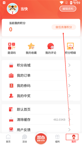 打开软件点击【我的】,点击【做任务赚积分】