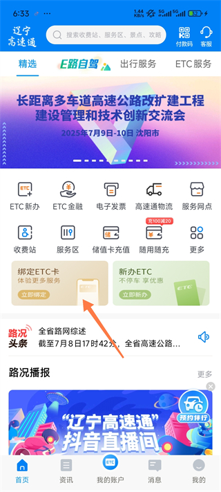ETC(辽通卡)模块,快速查询ETC相关业务;
