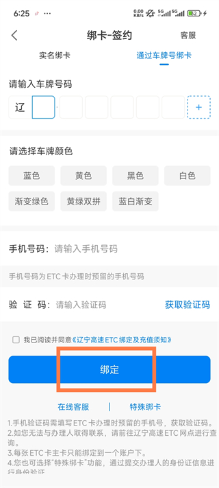 软件内有两种绑定方法,实名绑卡和通过车牌号绑卡