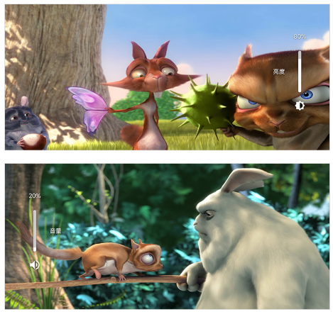 上下滑屏:在屏幕左侧上下滑动可调节屏幕亮度,在屏幕右侧上下滑动可控制声音大小。