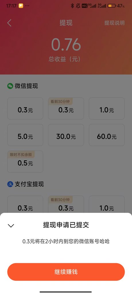 这就完成提现操作了。