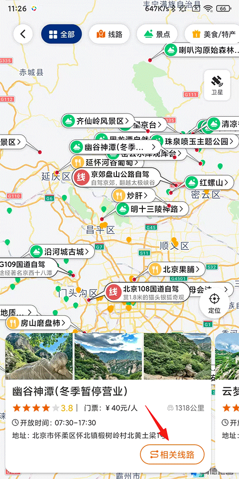 选择景区景点,接着点击下方的相关线路;