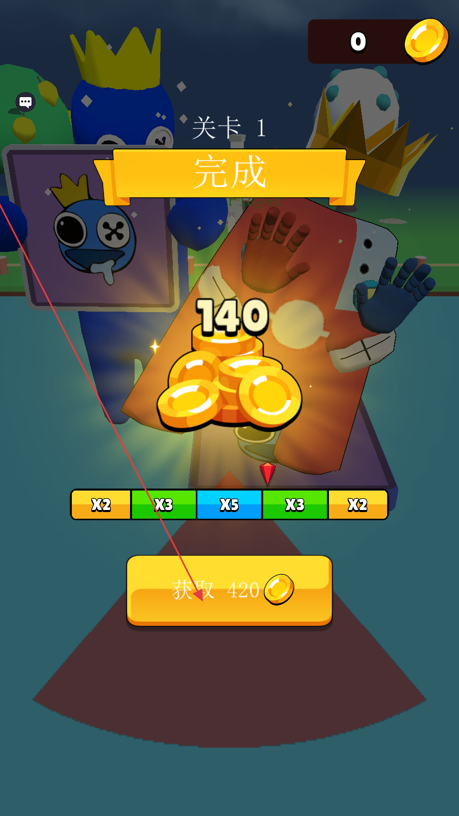 通关后点击【获取420金币】,领取奖励,积累资源。