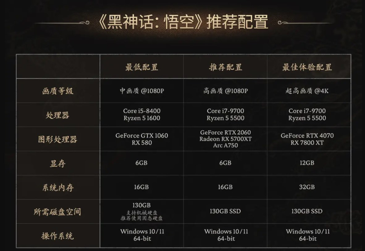 以上就是《黑神话悟空》的具体配置要求和上线时间,祝大家玩得开心~
