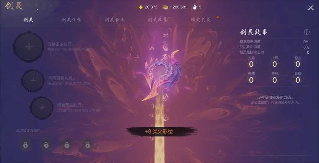 后期可解锁剑刃效果强化栏,在剑刃强化栏中装备剑刃效果相同的剑灵也可以提升剑刃效果等级。