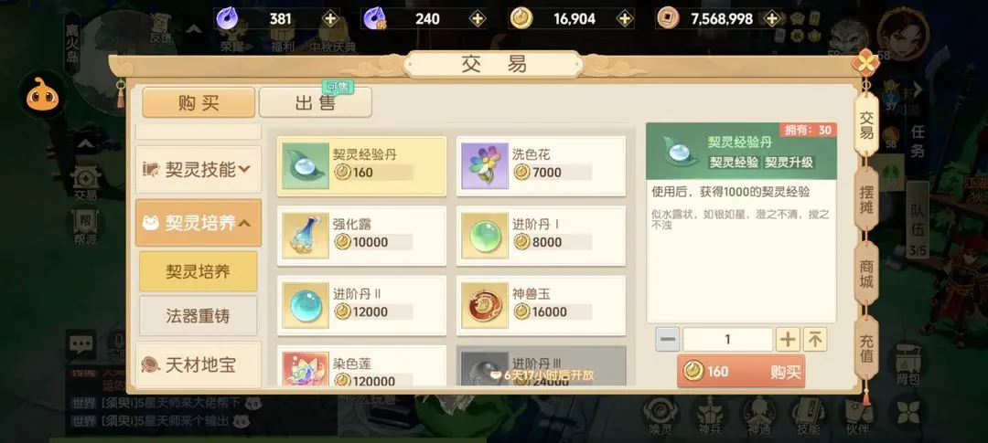 第三个就是回合制的核心之一宠物书了,离火的优点是书都没有很贵,而且宝宝打书都是指定位置的,很省钱,前面给的都卖就行了。系统有送自选书,一定选最贵的然后卖掉。其余染色强化露都可以卖掉用到了再买0损失哈哈