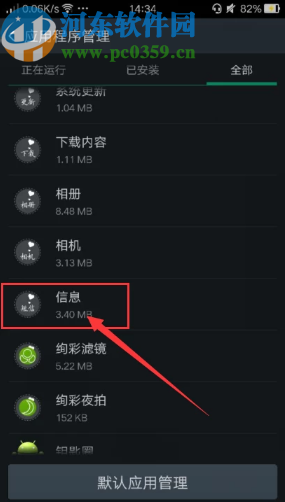 3.紧接着下一步我们就会在界面列表中看到手机中全部的应用程序了,然后我们需要滑动界面,在其中找到信息这个选项点击进去。