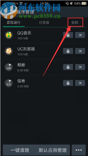 2.进入到应用程序管理这个功能界面之后如下图所示,然后我们点击其中的全部这个选项切换到手机中的全部应用中。
