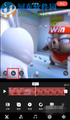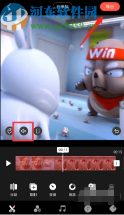 3.通过上一个步骤我们就可以消除视频原声了,之后点击界面中右上角的导出按钮就可以将消除过视频原声的文件导出到手机里面了。