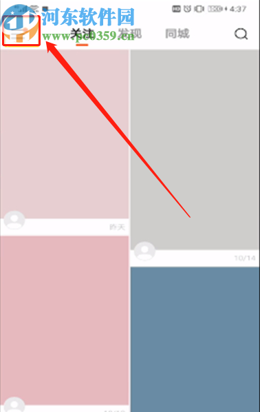 1.首先第一步我们打开手机之后找到快手应用图标,然后点击进入到应用主界面,紧接着点击界面左上角的三条横线图标。