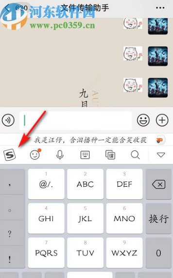 1.首先第一步我们需要打开手机,然后调出一个编辑信息的界面,打开搜狗输入法的键盘,然后点击左边搜狗输入法的图标。