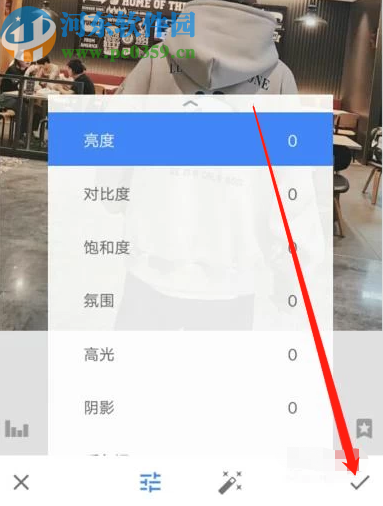 5.点击进入到调整图片的功能界面之后我们就可以调整亮度了,调整完成之后点击右下角的小勾图标即可应用调整。