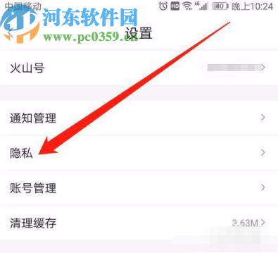 4.点击进入到应用的设置界面之后我们就可以看到隐私这个设置选项了,紧接着点击进去。