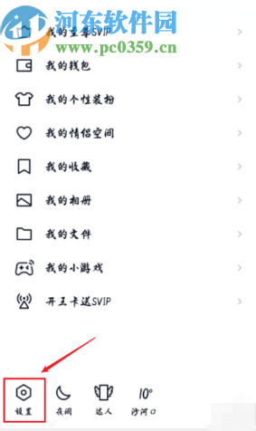 1.首先第一步我们点击进入到QQ应用界面之后,在界面左上角点击自己的头像,然后在出现的界面中点击左下角的设置图标。
