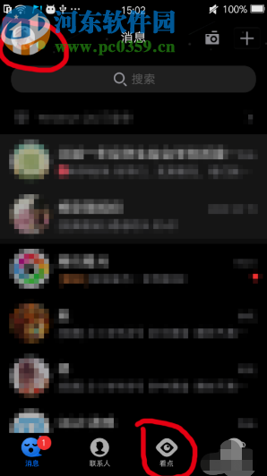 1.首先第一步我们打开QQ的应用界面之后,在消息列表界面点击左上角的个人头像,如下图中所示。