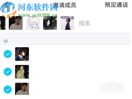 3.点击语音通话之后下一步是选择想要发起语音通话的成员,选中之后向他们发起语音通话。