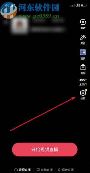 3.切换到开直播界面之后我们在界面的右边点击设置这个选项,如下图中所示。