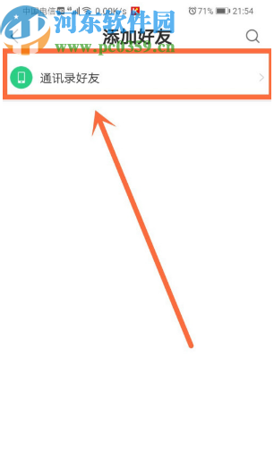 3.点击添加好友图标进入到添加好友的界面之后,我们在界面中就可以看到通讯录好友这个功能选项了,接着点击进去。