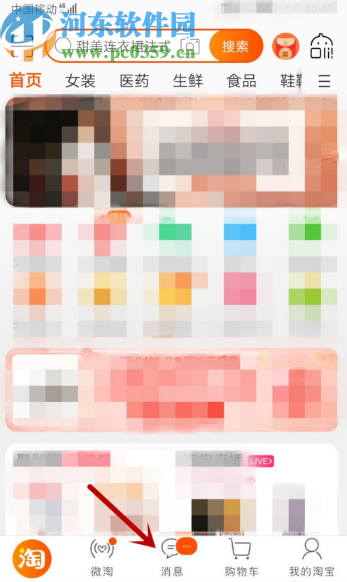 1.首先第一步我们进入到淘宝主界面之后,点击界面下方的这个消息功能,切换到消息界面中。