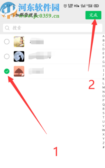 5.最后我们在选择管理员的界面中,选中想要的群成员之后点击右上角的完成按钮就可以完成群管理员的设置了。