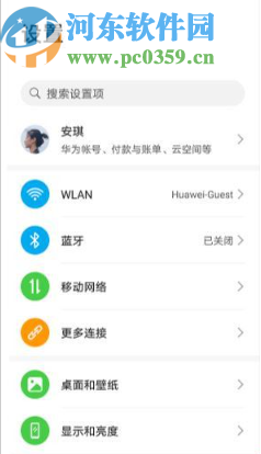 2.到达在设置界面之后下一步操作就是滑动界面,在其中找到桌面和壁纸这个功能选项,然后点击进入到设置界面中。