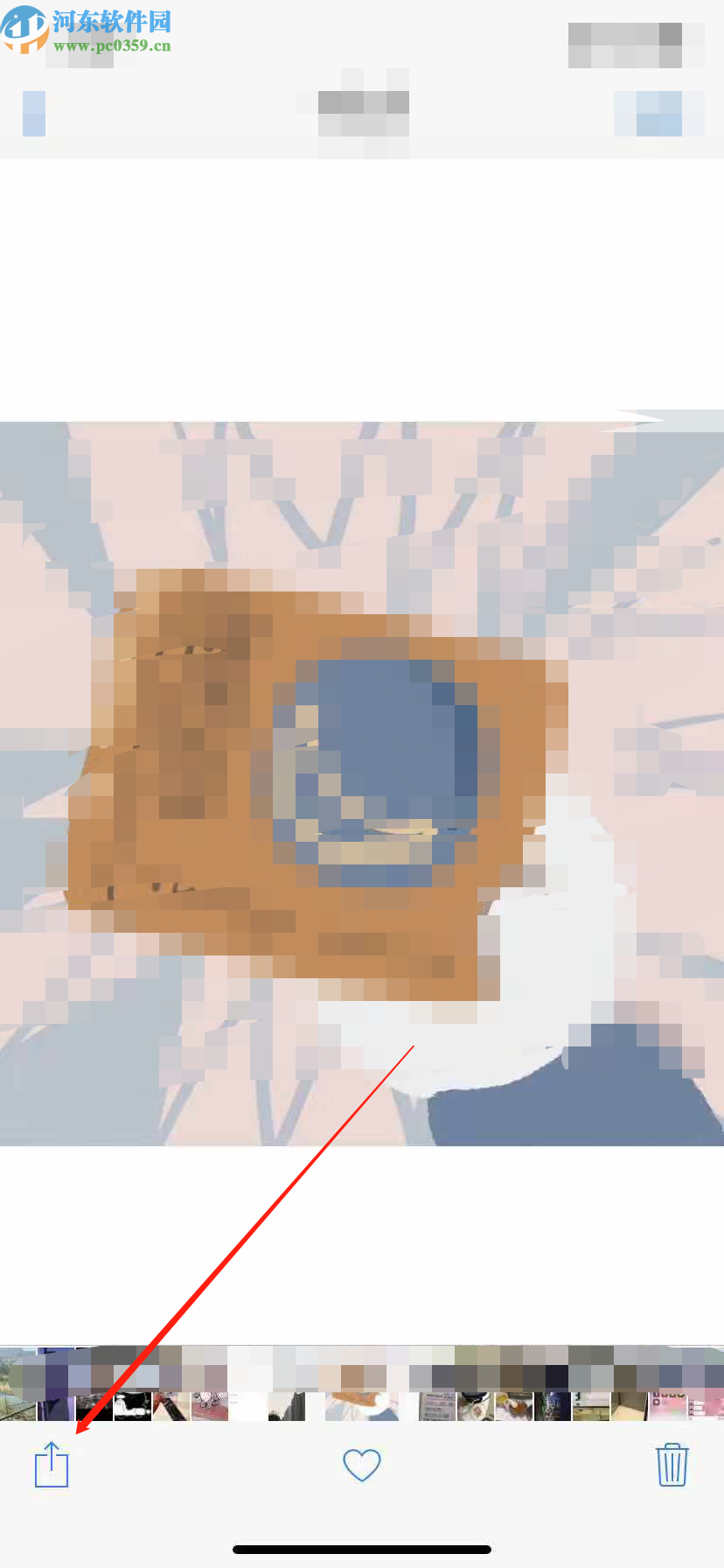 2.然后下一步需要在相册中找到自己想要设置的动态壁纸点击进入到查看的界面,紧接着在查看图片的界面点击左下角的箭头图标。