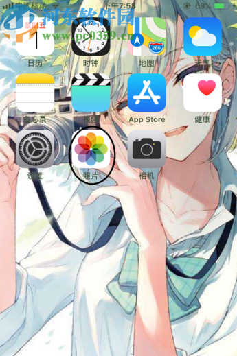1.首先第一步我们打开手机之后在手机界面中找到照片应用图标,然后点击进入到照片功能中。